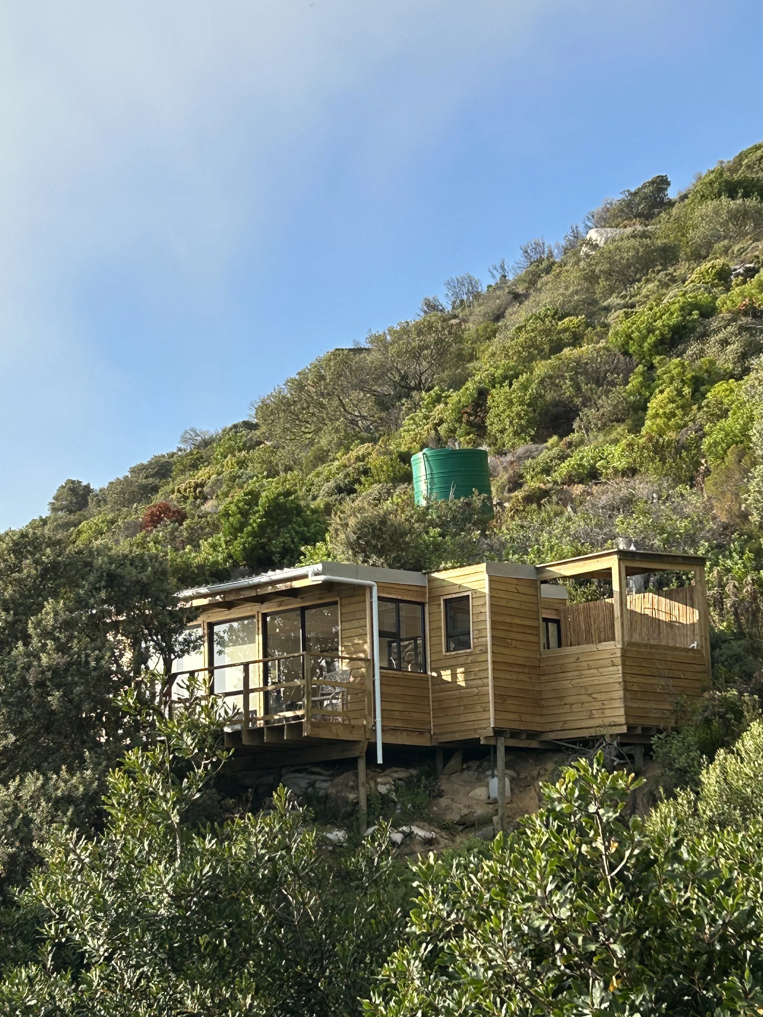 Up to 2 guests: Open plan single room: 1 double bed: outside shower with hot and cold water.