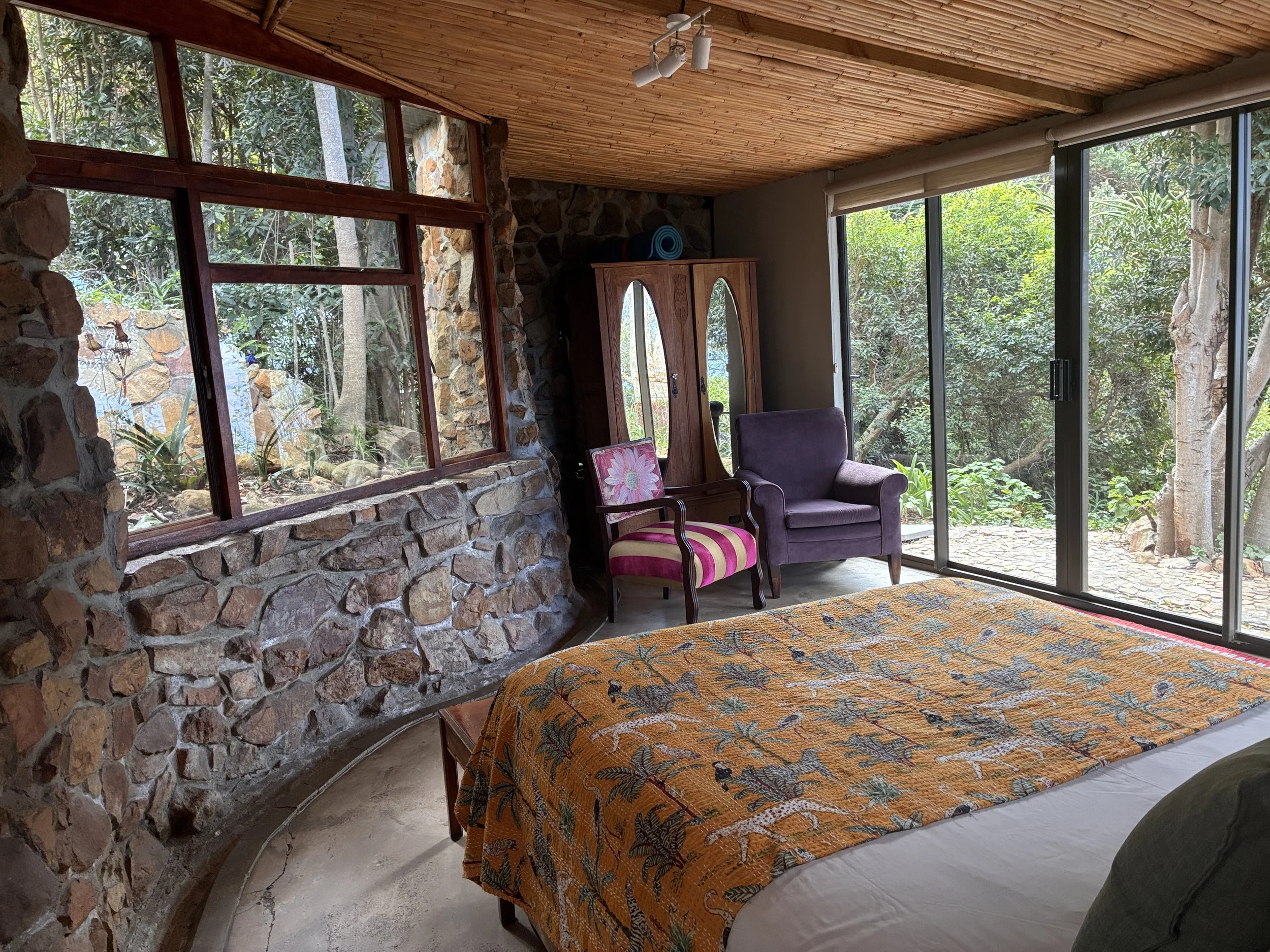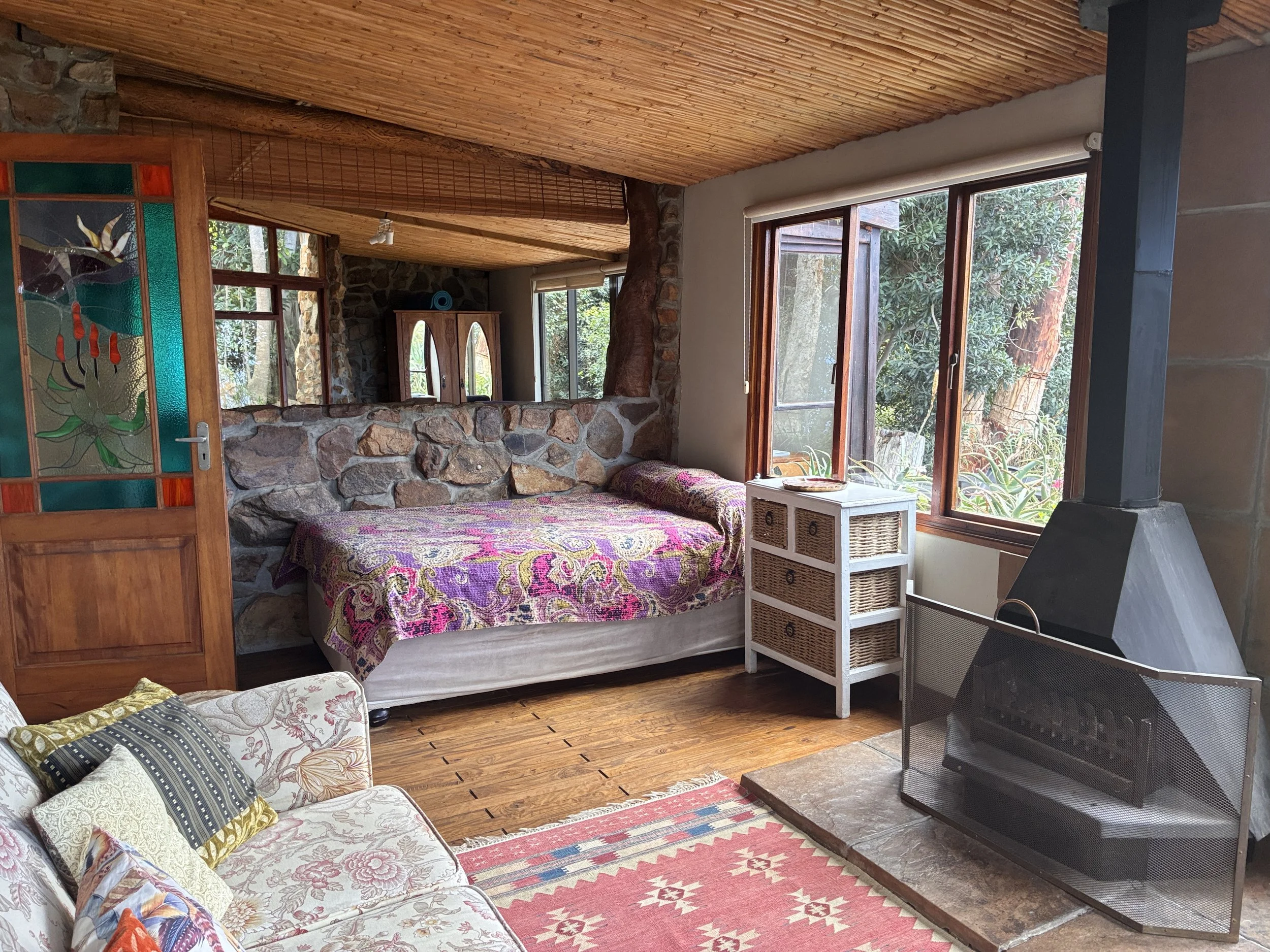 The Cottage is a charming open-plan, one bedroom stone walled unit, tucked into the mountainside, overlooking the sea and just above a small mountain stream.