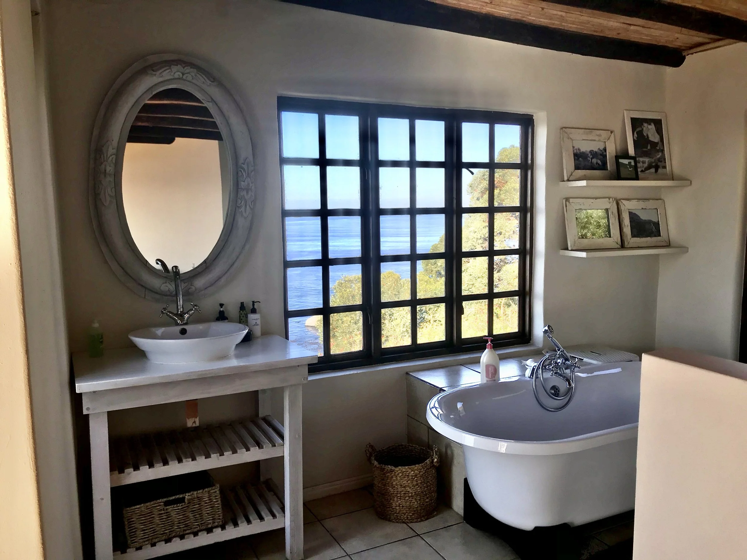 The Villa is a modernised historic double-storey home with two bedrooms and a large open-plan lounge. It can sleep a maximum of 5 guests (two bedrooms plus one bed in the lounge area). Upstairs and downstairs decks and huge sliding doors provide 360-degree views of False Bay and the towering mountains of the Deep South Peninsula.